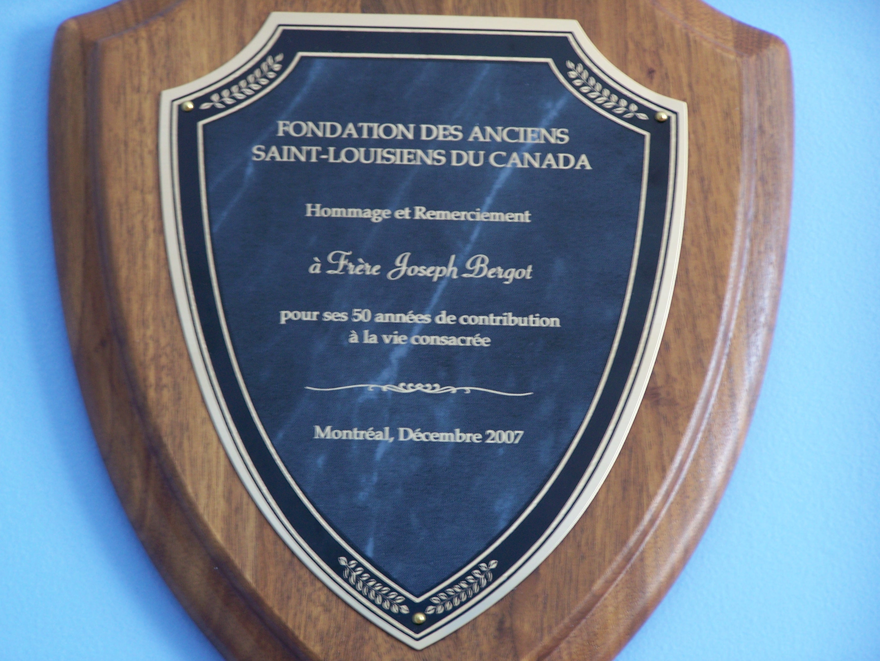 Plaque Hommage au frère Joseph Bergot à l'occasion de ses 50 ans de vie religieuse-année 2007